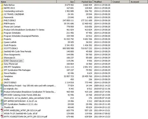 Figure 3 - List of stolen data from Sony Picture servers