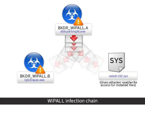 Experts at Trend Micro have detected the malware as BKDR_WIPALL, malware that in the first stage of the attack chain starts with BKDR_WIPALL.A, which is the main installer, and it is disguised as an executable file named "diskpartmg16.exe."