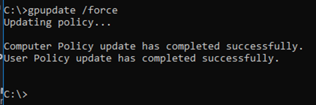 In order to make sure that any applied Group Policy modifications do indeed take effect immediately, you can either restart the system or run a gpupdate /force command. To do this, we are going to want to go to Start and run “Command Prompt.” To apply Group once Command Prompt has opened, you will want to run the command gpupdate /force.