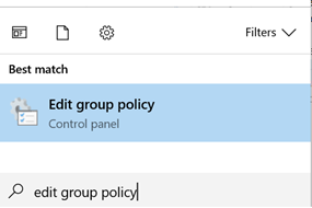 To get to Local Group Policy, we are going to want to click on Start and type in “Edit Group Policy.”