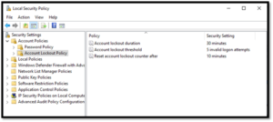 - Set account lockout duration to 30 minutes: net accounts /lockoutduration:30