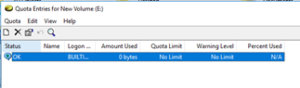 You can right click on any of the existing entries and select Properties to set/update the quota, or go up to the Quota dropdown menu to select New Entry and select a user you wish to create a quota for.