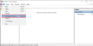 2. Select the File menu and then Add/Remove Snap-in option.