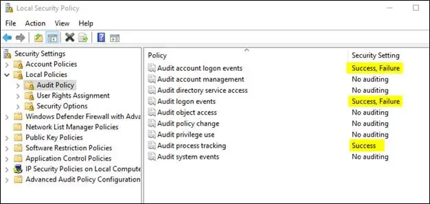 This is in not a comprehensive list, but rather these are the critical events which you can include in your monitoring and analysis. We will be focusing on some of the vital Event IDs listed above, for the authentication activities used in lateral movement detection analysis. Some of these events are disabled by default in windows systems, so we must enable these events from the audit policy as illustrated in below screenshot: