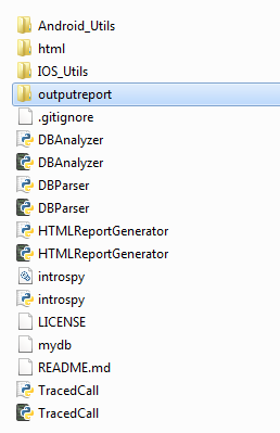 python introspy.py –p [platform] –o [output folder name] databasename.db