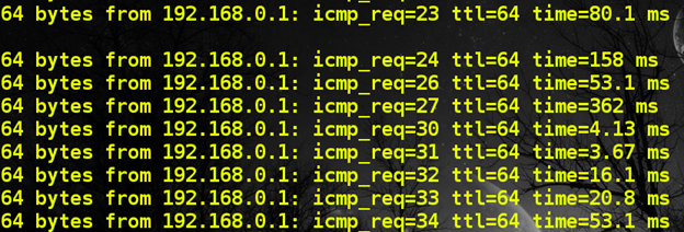 We noticed that at this distance, using the internal antenna, we were barely able to ping the wireless router at 192.168.0.1. As evident from the roundtrip delay time of several milliseconds [Figure 2], the internal antenna was performing poorly and there were multiple packet drops.
