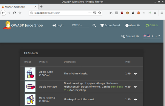 When you load http://localhost:3000 on your browser, you will see the default juice-shop page. The idea is basically to have an “online” shop where shoppers can shop for different types of juice. You basically shop and add your products to cart and check out.
