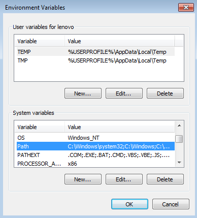 Figure 4: Environment variable configuration