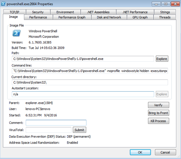 Figure 6: Process Explore to view extra CMD line arguments