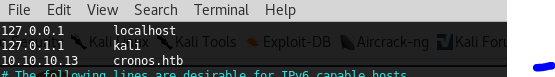 6. But let’s try to edit the hosts file for cronos.htb.