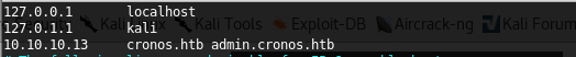9. Now, following the same steps above, we can edit the /etc/hosts file again to add an entry for admin.cronos.htb