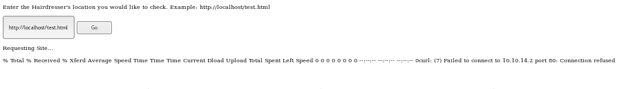 9. Let’s try to see if we can make a request to our attacking box, 10.10.14.2. Below, we can see that the request has been made, but since there is no Web server running on our box as of now, the connection was refused. It’s important to note that behind the scenes, a curl request has been made