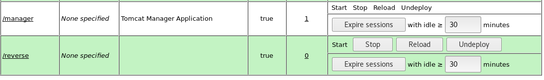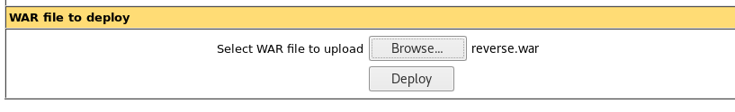 11. Once the reverse.war is generated, upload it to Tomcat. Below, we can see that the previously generated war file is selected. Click Deploy.