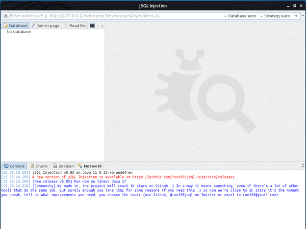 JSQL injection is a java-based application used to find database information from a remote server. It can be used to find and exploit SQL injection vulnerabilities. Some of its features include: