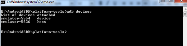 'adb devices' this command lists all the devices available to be interacted with.