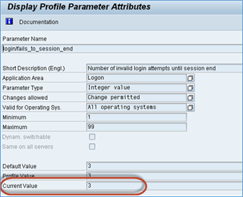 All applications are supposed to lock the user accounts upon encountering more than certain failed login attempts. In other case, that would lead to brute force attacks using which an attacker can steal guess the password. The parameter login/fails_to_user_lock specifies the allowed number of wrong attempts. Default value is 12. There is one more parameter login/fails_to_session_end that specifies the number of times that a user can enter an incorrect password before the system ends the session. Below is a screenshot of the settings screen.