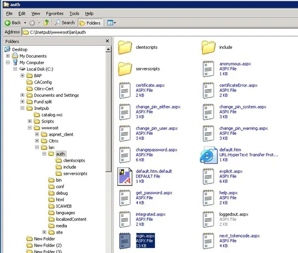 I traversed the directory and found all aspx files that were used for login and other purposes, confirming I am on the Citrix server.