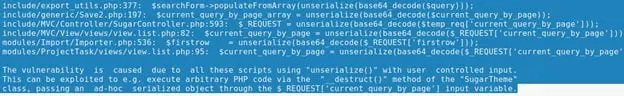 Basically, the vulnerability is that the user input is handled in the method "unserialize()." This can be exploited with the help of arbitrary PHP code.