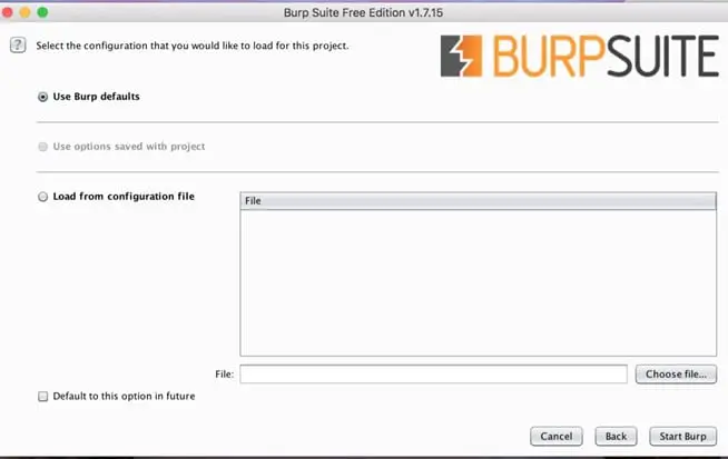 After running Burp Suite, the following screen will appear: