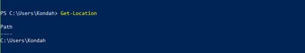 Figure 17: Example of Cmdlets "Get-Location" which allows us to get the current directory