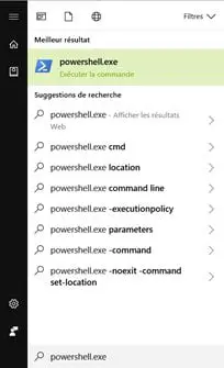 To launch PowerShell command line, you can do it from the launch bar on any version of Windows, ( From Windows 7, PowerShell is integrated by default) by taping "PowerShell.exe" :