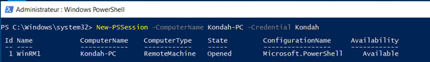 Note that we are using the same parameters that we saw earlier (ComputerName and Credential).We can see all available sessions with the following command: