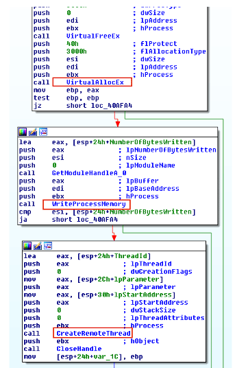 Figure 1 shows the block of code responsible for performing DLL injection.