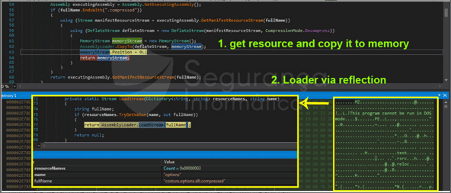 On the other hand, this new warsaw trojan banker was observed using the process injection technique in .NET to load the Horus Eyes RAT into the memory. However, .NET binaries work on a high-level code paradigm and have a set of well-defined libraries such as System.Reflection, which can be used to load assemblies at runtime, the model is the same as described previously in Figure 3.