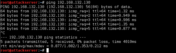 We are telling Snort to log generated alerts in the ASCII format rather than the default pcap. Once Snort is running (again, you won’t see any output right away), go to your Kali Linux VM and enter the following command in a terminal shell (using your Ubuntu Server IP address):