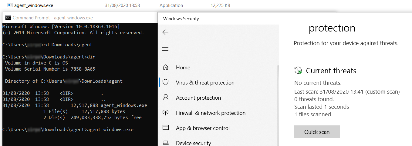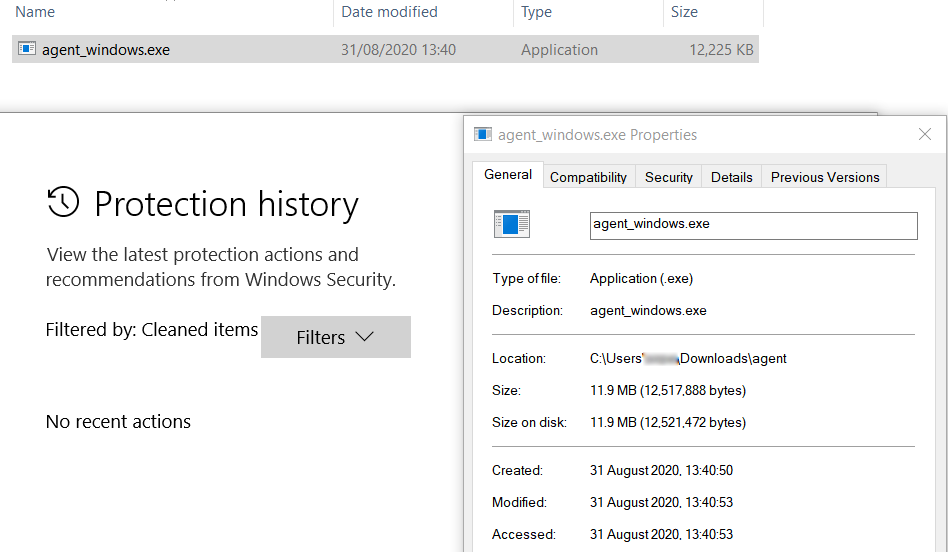 By performing a Windows Defender scan on the specific agent (agent_windows.exe), we can verify that it was not detected by Microsoft Windows Defender — 31 August 2020.