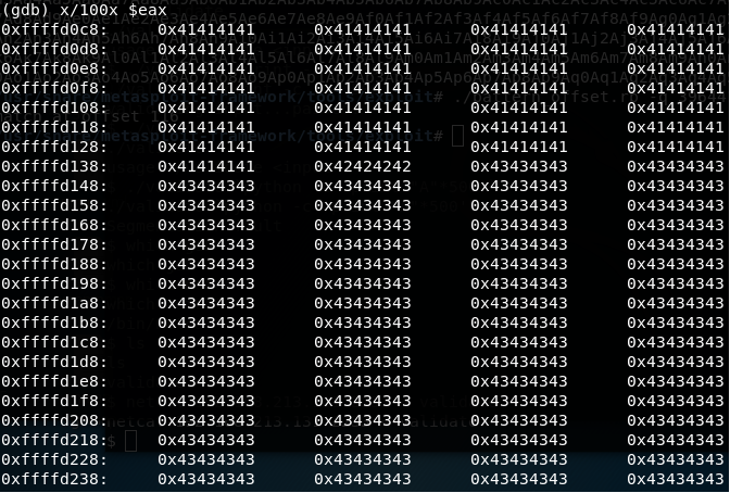 7. From the above-discovered offset, let’s recreate our buffer with 116 As, 4 Bs and the remaining characters as Cs (from the original buffer of 500).