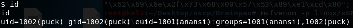 1. Below, we can see the obtained shell from Part 1. The shell is currently under user puck.