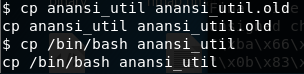 17. Now we know that the binary at /home/anansi/bin/anansi_util can be run as root. This time, we have the permission to change the anansi_util. Copying the original anansi_util to anansi_util.old and copying /bin/bash to anansi_util instead.