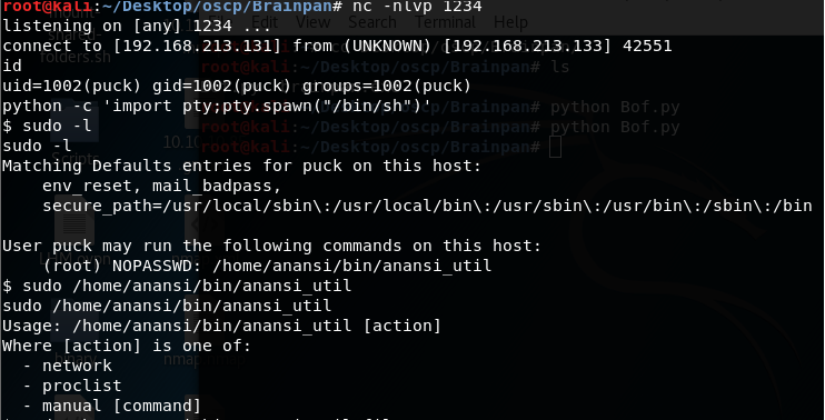 4. Below is the output from the sudo -l command. We can see that the user puck can run the binary under /home/anansi/bin/anansi_util as root.