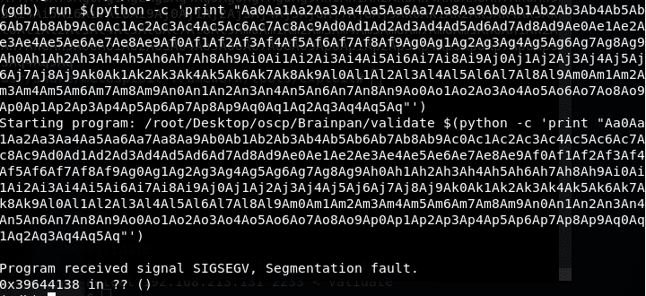 2. Running the validate binary, it looks like it needs input. So let’s try with buffer of “A” in this case, and we get a segmentation fault.