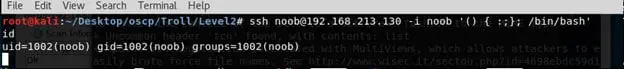 - Repeating the process with verbose mode on, we see that a COMMANDS has been set up for authorized keys for user noob. So the question is, how can we bypass this?