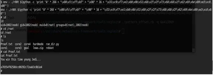 - Invoking the script in same way (env -) we can see that we are root and got Proof.txt. We win!