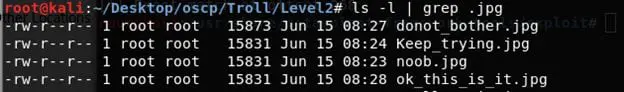 - Browsing all of them and downloading all the images, I found an interesting thing about their size. Most of them are of same size except one, as we can see below.