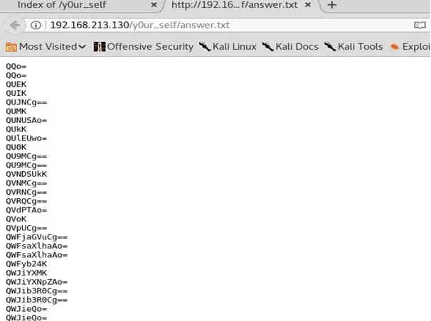 - Below are the contents of the answers.txt file. This looks full of base64-encoded strings.