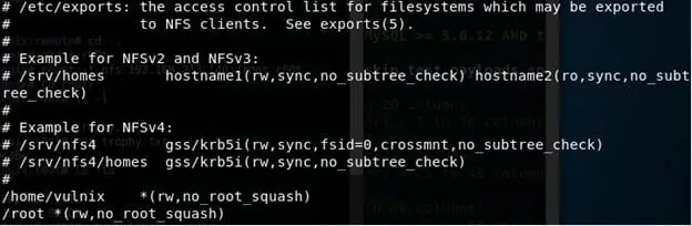 18. Below are the changes done to /etc/exports. Notice first we have changed the root squash flag to no root squash, which will give us the ability to mount this share as root remotely. But that will not serve our purpose so let's try to offer /root with no_root_squash.