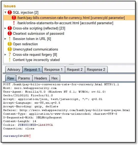 Once we are done with the logical vulnerability finding we will check the scanner found issues and remove the false positives, for example, we opened the Burp result, and it detected SQL injection, so we checked in which URL.