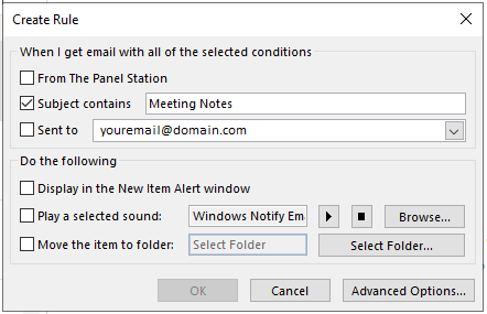 With Outlook, for instance, you can instruct the client to display an item alert, play a sound or move an item to a specific folder if the email subject line contains a certain set of keywords.