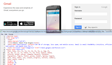 Open the webpage whose phishing page you want to built. Here, as a demonstration, I am using a gmail page. Go to gmail.com, click on view source, then copy all the source code of the page and paste it into notepad or any other editor. Now search for "action" in that code.