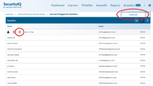 - Navigate to Learners to Delete in the Active Directory Synchronizer section of SecurityIQ account.