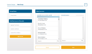 - You can search for learners using the search tool at the bottom of the Available Learners list and Selected Learners list.