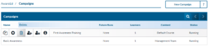 AwareED Campaigns are where you schedule awareness training for your organization. You can change the type, topic and duration of trainings your learners participate in. To get started navigate to Campaigns under AwareED.