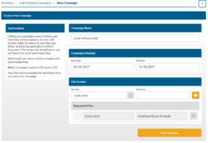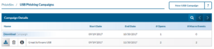 - Click the Save Campaign button. After the saving the campaign it will be in your USB Phishing Campaign list.