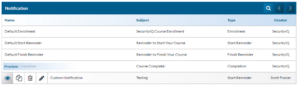 - When done click the Save button. The newly created education will be in your Notification list.
